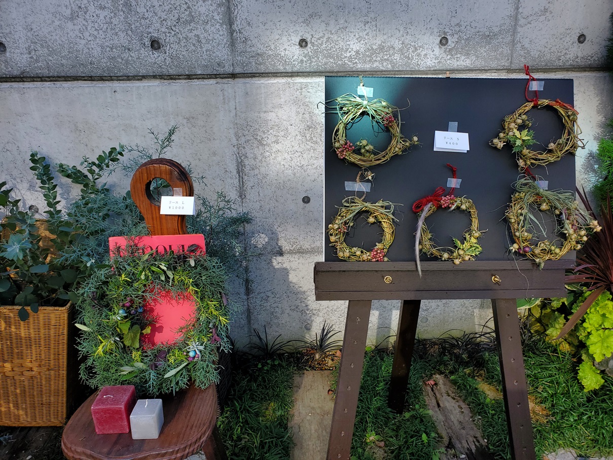 3回目のリーフブーケ 1day shopは、クリスマスムードいっぱいの華やかな店先となりました。